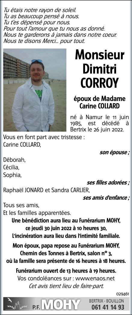 Décédé à Bertrix (6880) le dimanche 26 juin 2022 à l'âge de 37 ans