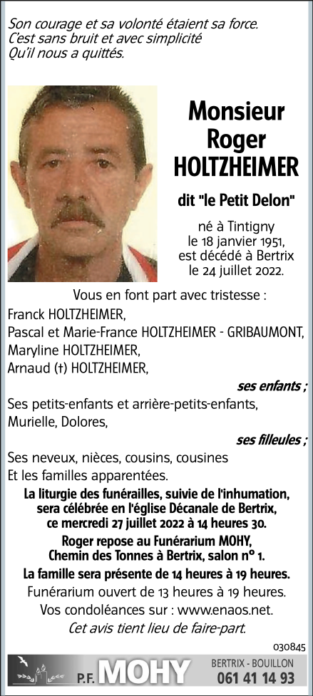Died in Bertrix (6880) on 24 July 2022 at the age of 71 years
