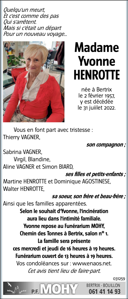 Madame Yvonne HENROTTE