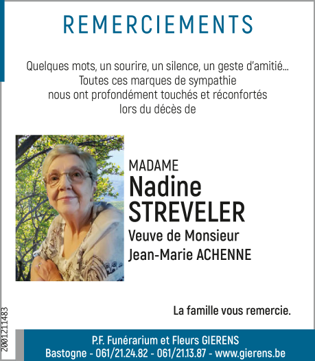 Décédée à Auvelais (5060) le jeudi 14 juillet 2022 à l'âge de 74 ans