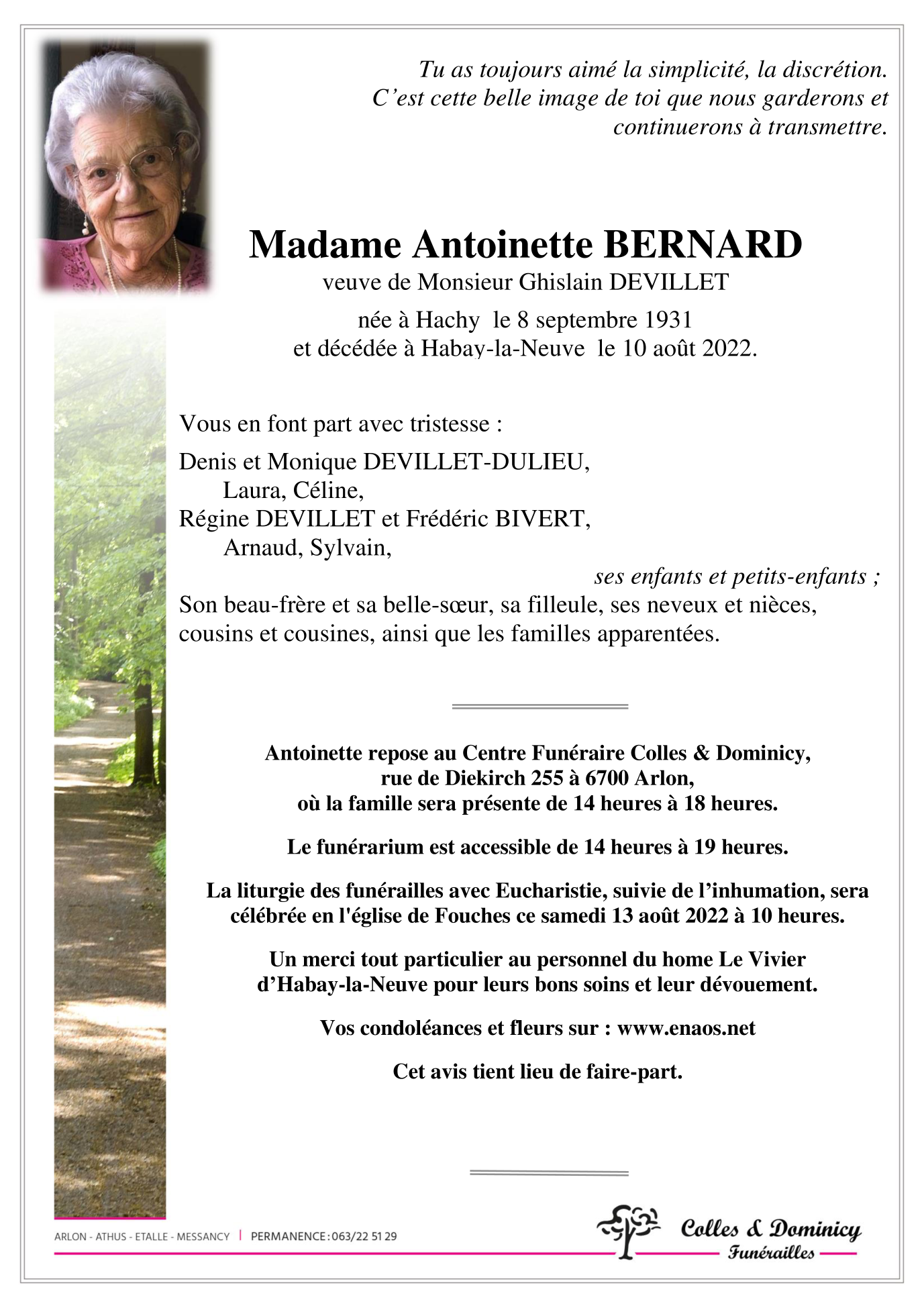 Née à Hachy (6720) le mardi 8 septembre 1931