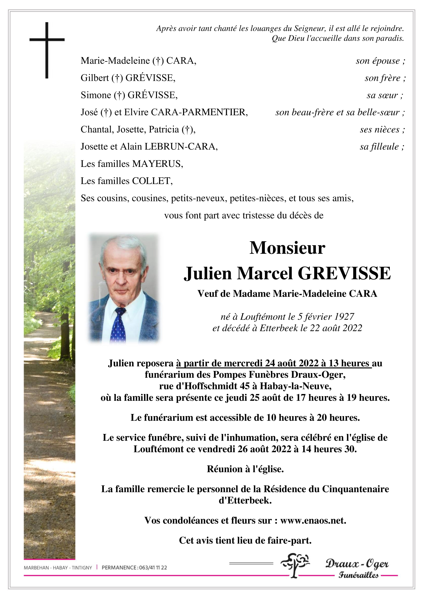 Décédé à Etterbeek (1040) le lundi 22 août 2022 à l'âge de 95 ans
