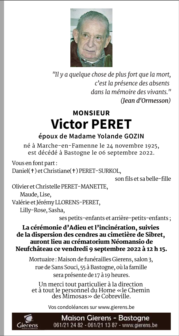 Décédé à Bastogne (6600) le mardi 6 septembre 2022 à l'âge de 96 ans