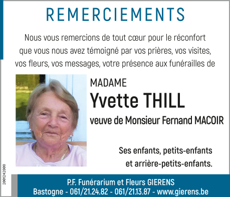 Décédée à Bastogne (6600) le lundi 15 août 2022 à l'âge de 91 ans