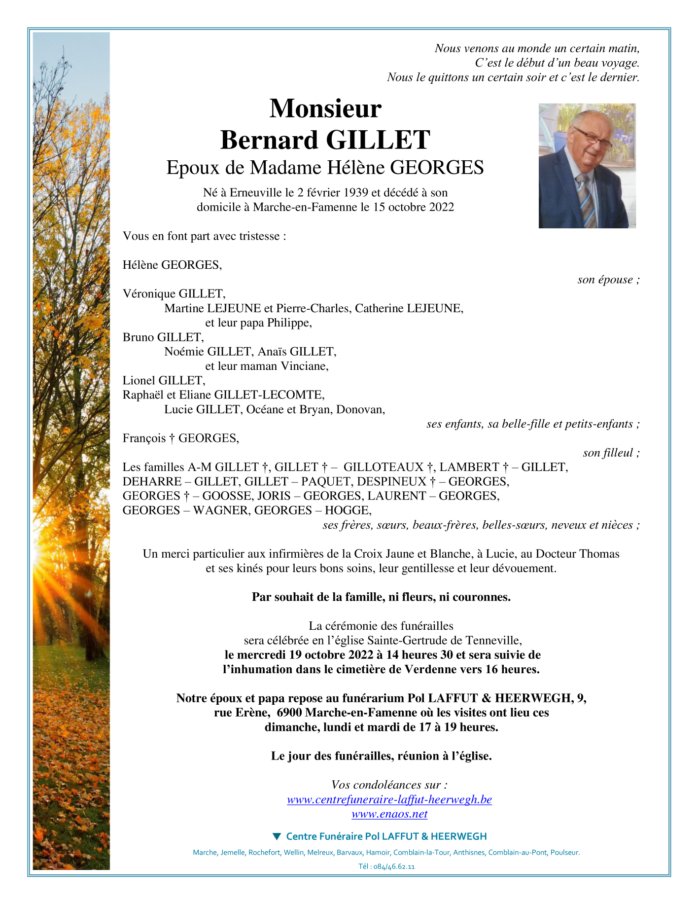 Décédé à Marche-en-Famenne (6900) le samedi 15 octobre 2022 à l'âge de 83 ans