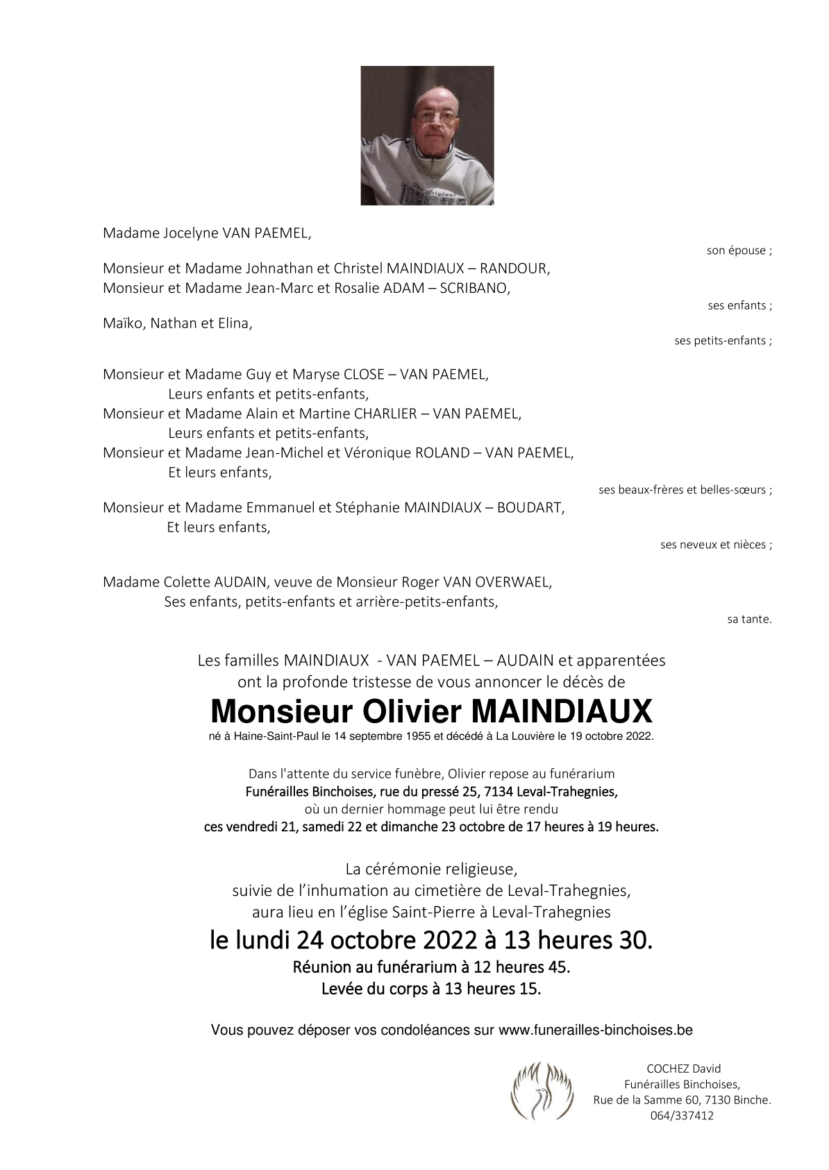 Décédé à La Louvière (7100) le mercredi 19 octobre 2022 à l'âge de 67 ans