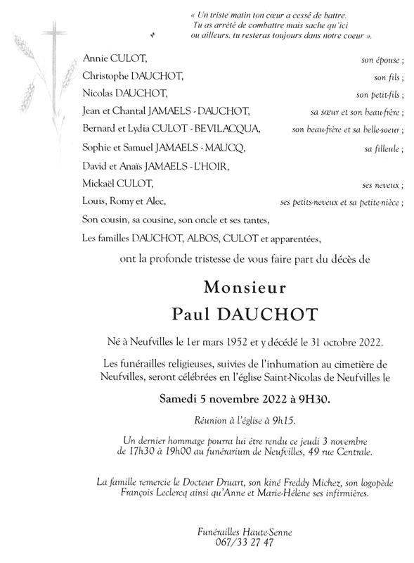 Fallecido en Neufvilles (7063) el lunes, 31 de octubre de 2022 a la edad de 70 años
