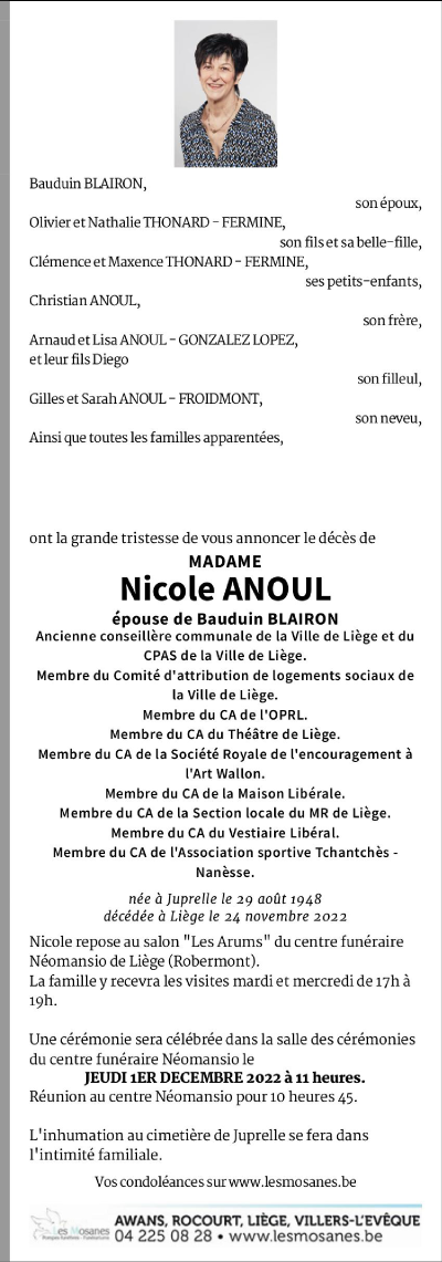 Died in Liège (4000) on 24 November 2022 at the age of 74 years