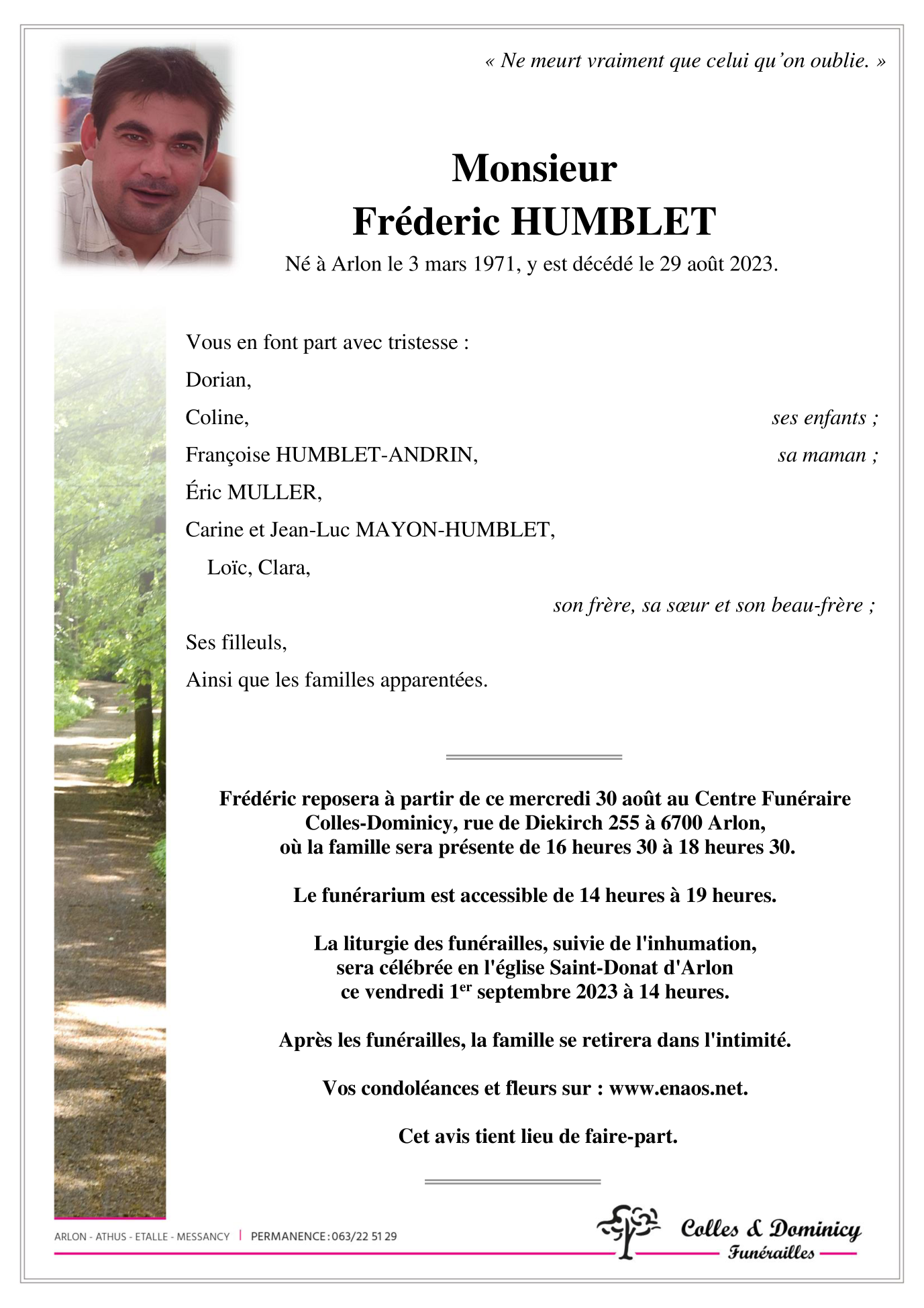Décédé à Waltzing (6700) le mardi 29 août 2023 à l'âge de 52 ans