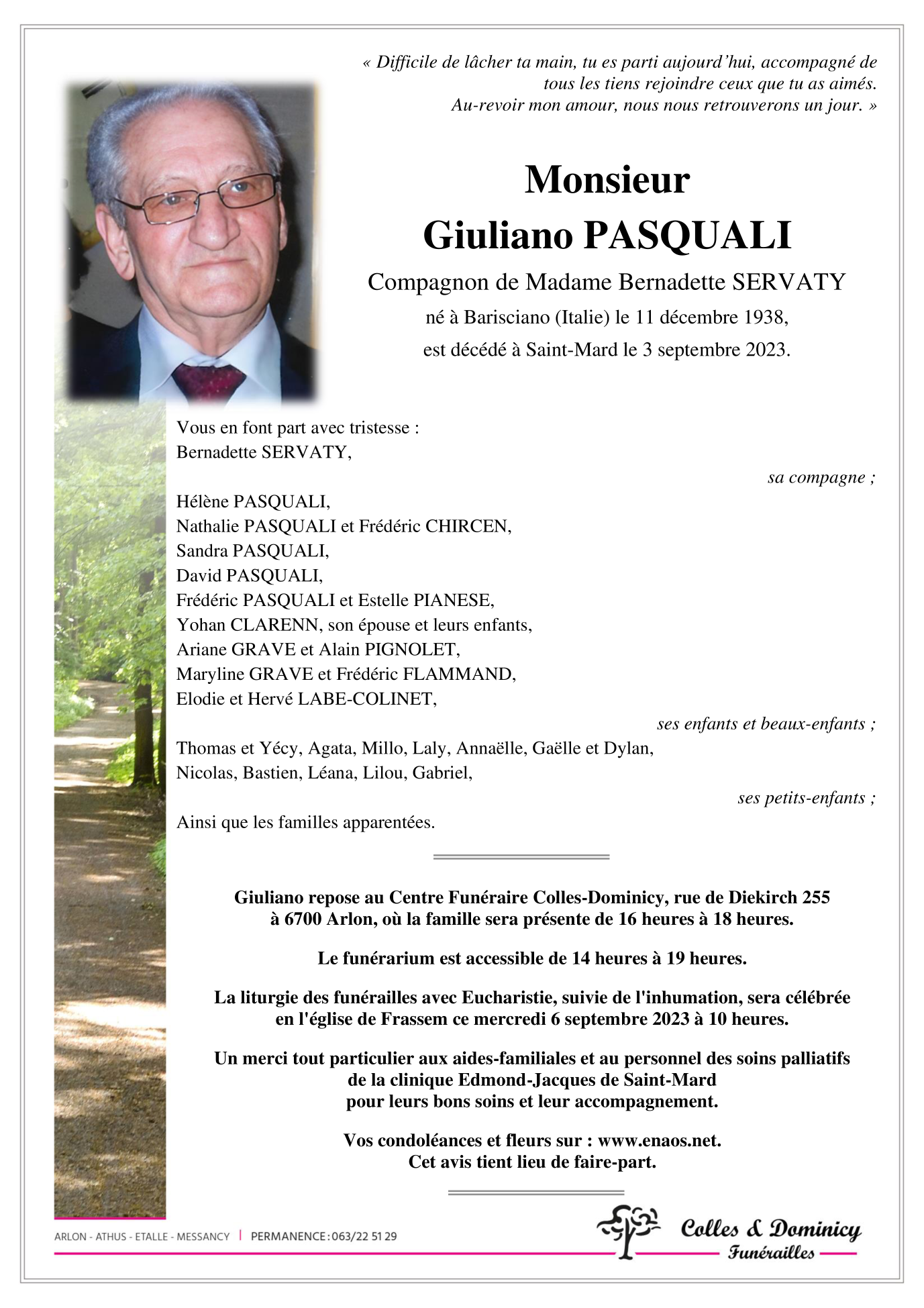 Décédé à Saint-Mard (6762) le dimanche 3 septembre 2023 à l'âge de 84 ans
