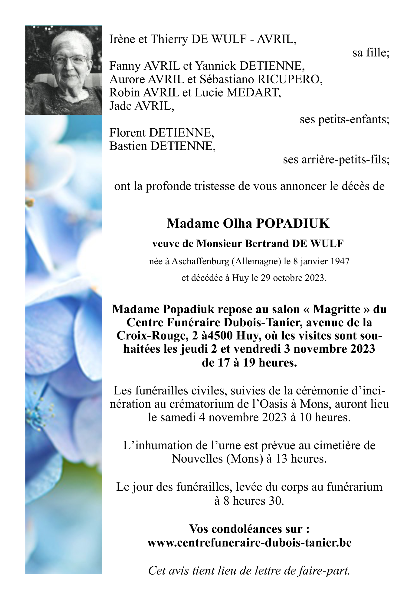 Annonce nécrologique