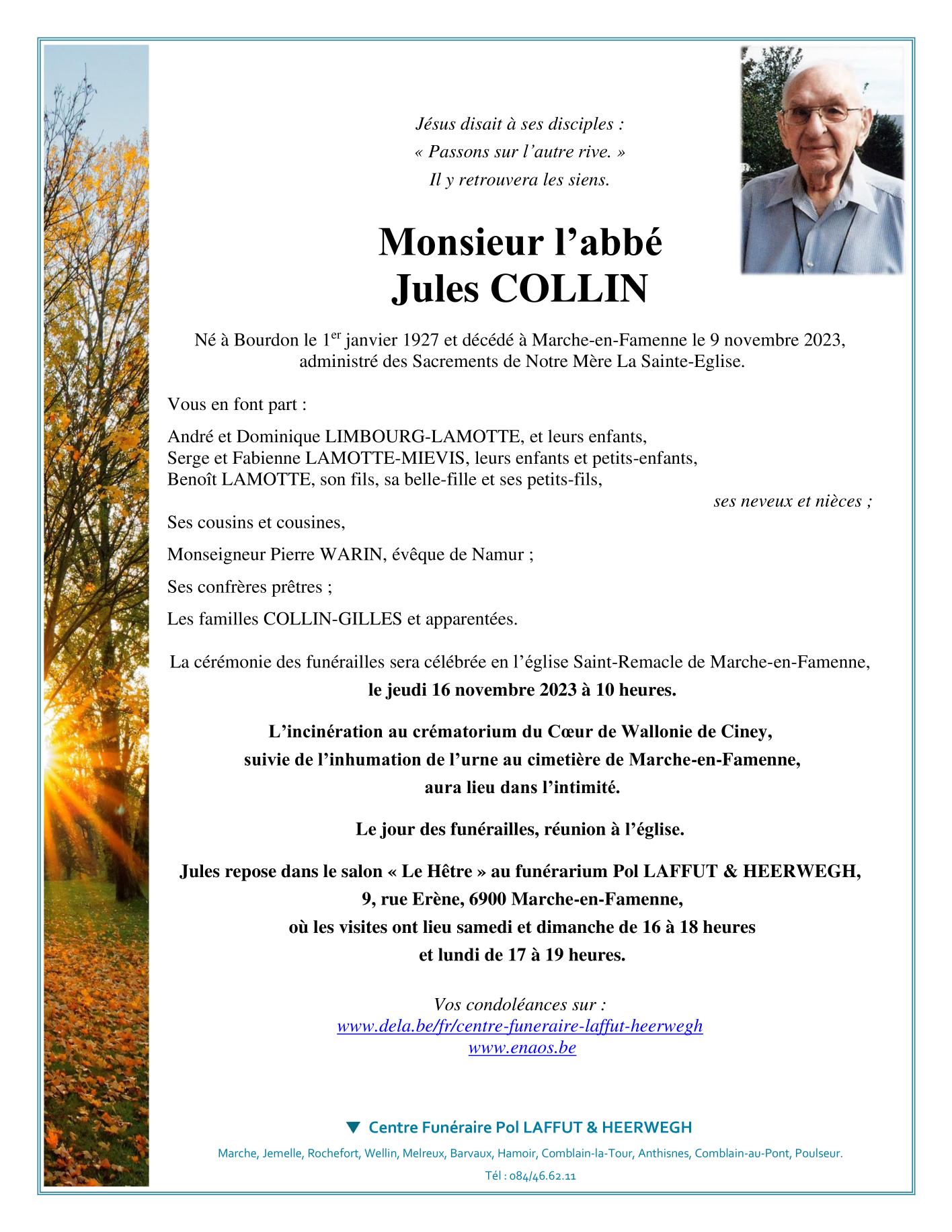 Décédé à Marche-en-Famenne (6900) le jeudi 9 novembre 2023 à l'âge de 96 ans