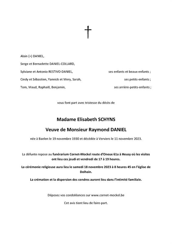 Décédée à Verviers (4800) le samedi 11 novembre 2023 à l'âge de 92 ans