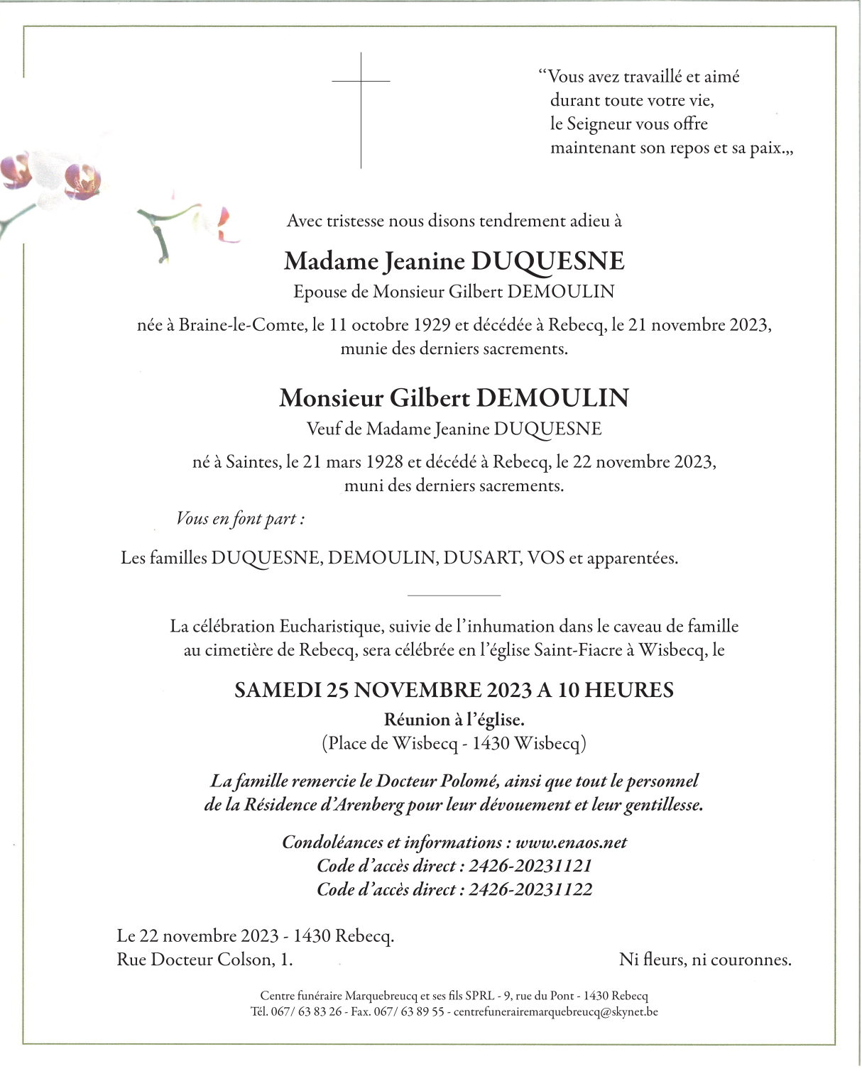 Décédée à Rebecq (1430) le mardi 21 novembre 2023 à l'âge de 94 ans