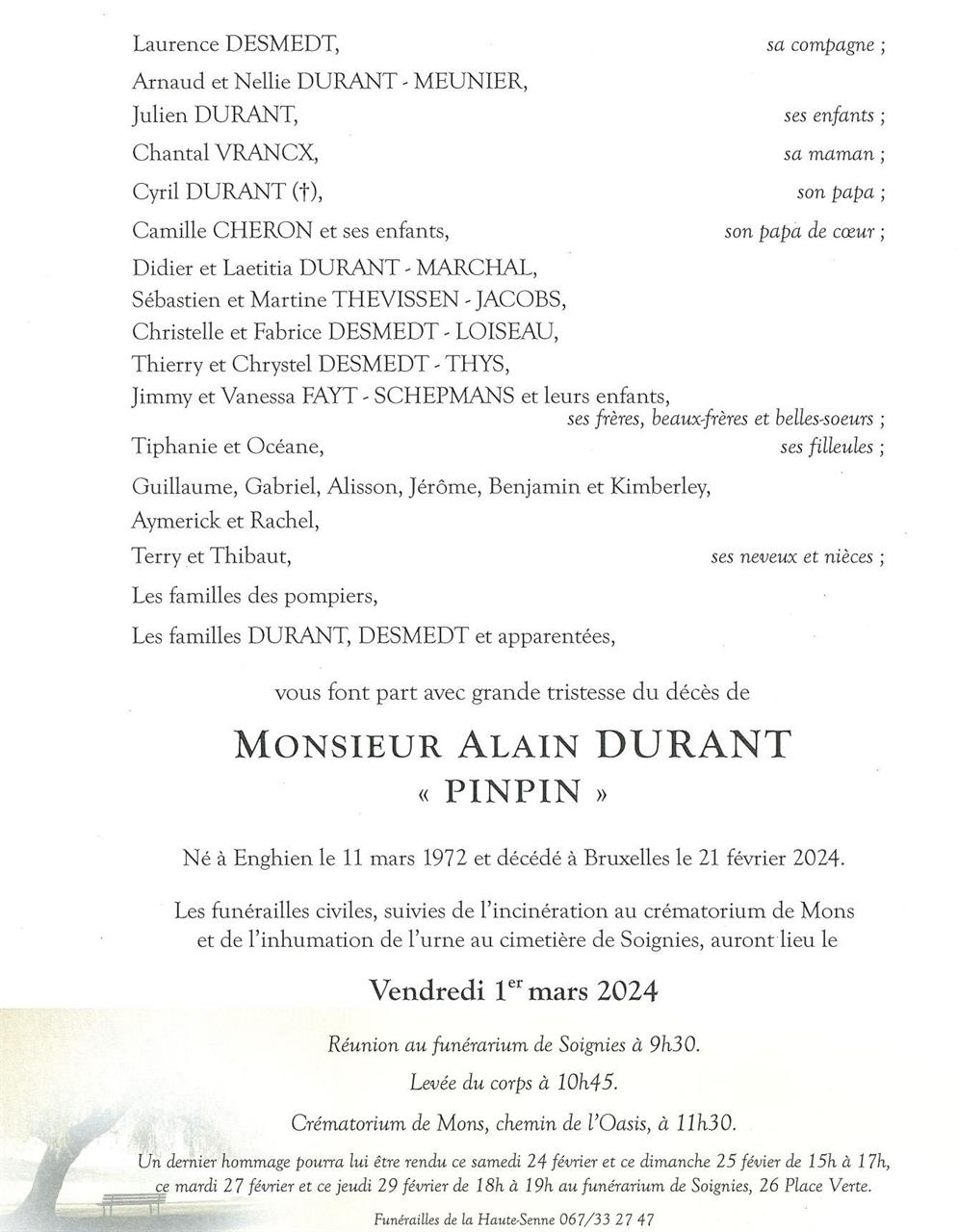 Décédé à Bruxelles (1000) le mercredi 21 février 2024 à l'âge de 51 ans