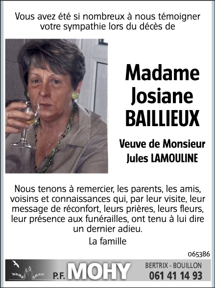 Décédée à Bertrix (6880) le samedi 17 février 2024 à l'âge de 81 ans