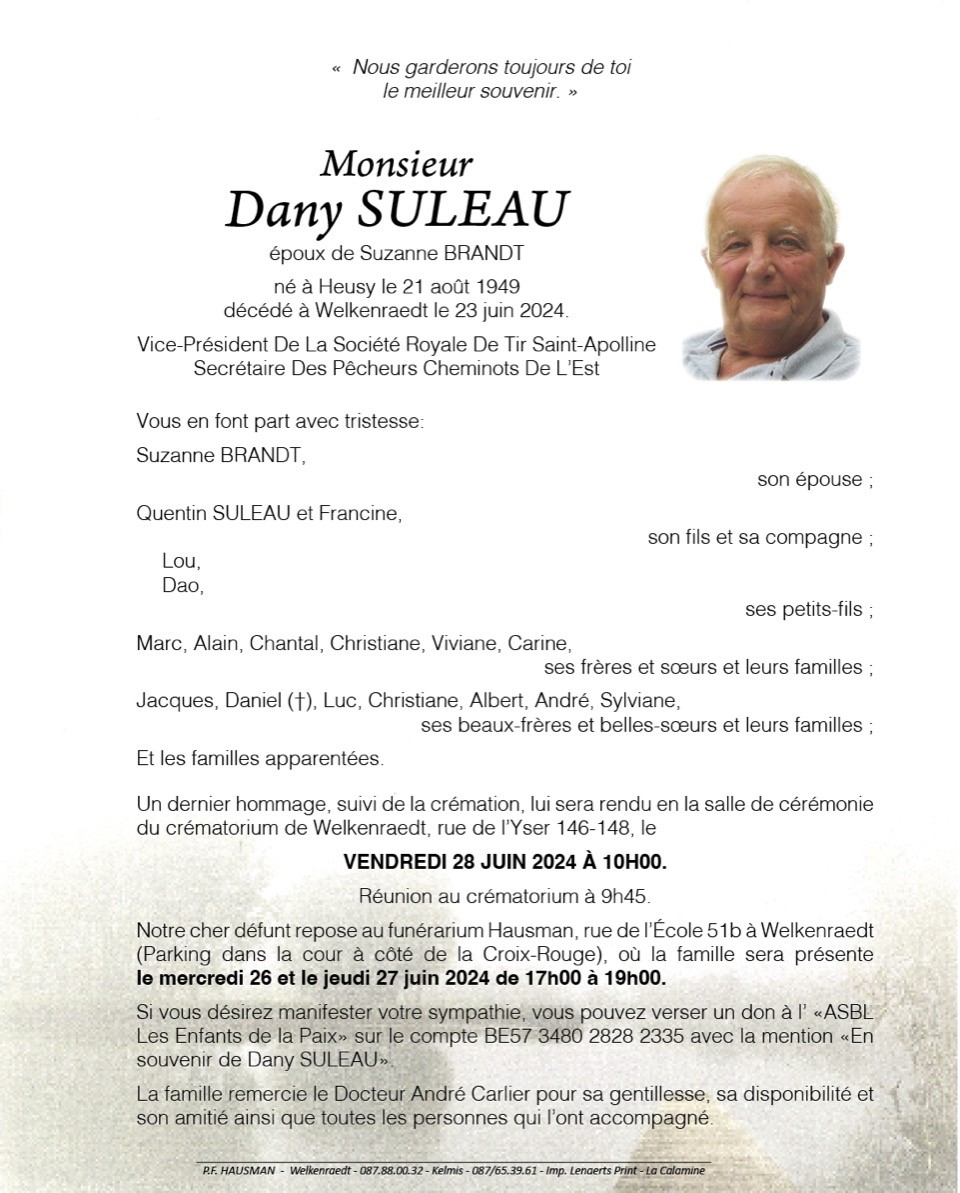 Died in Welkenraedt (4840) on 23 June 2024 at the age of 74 years