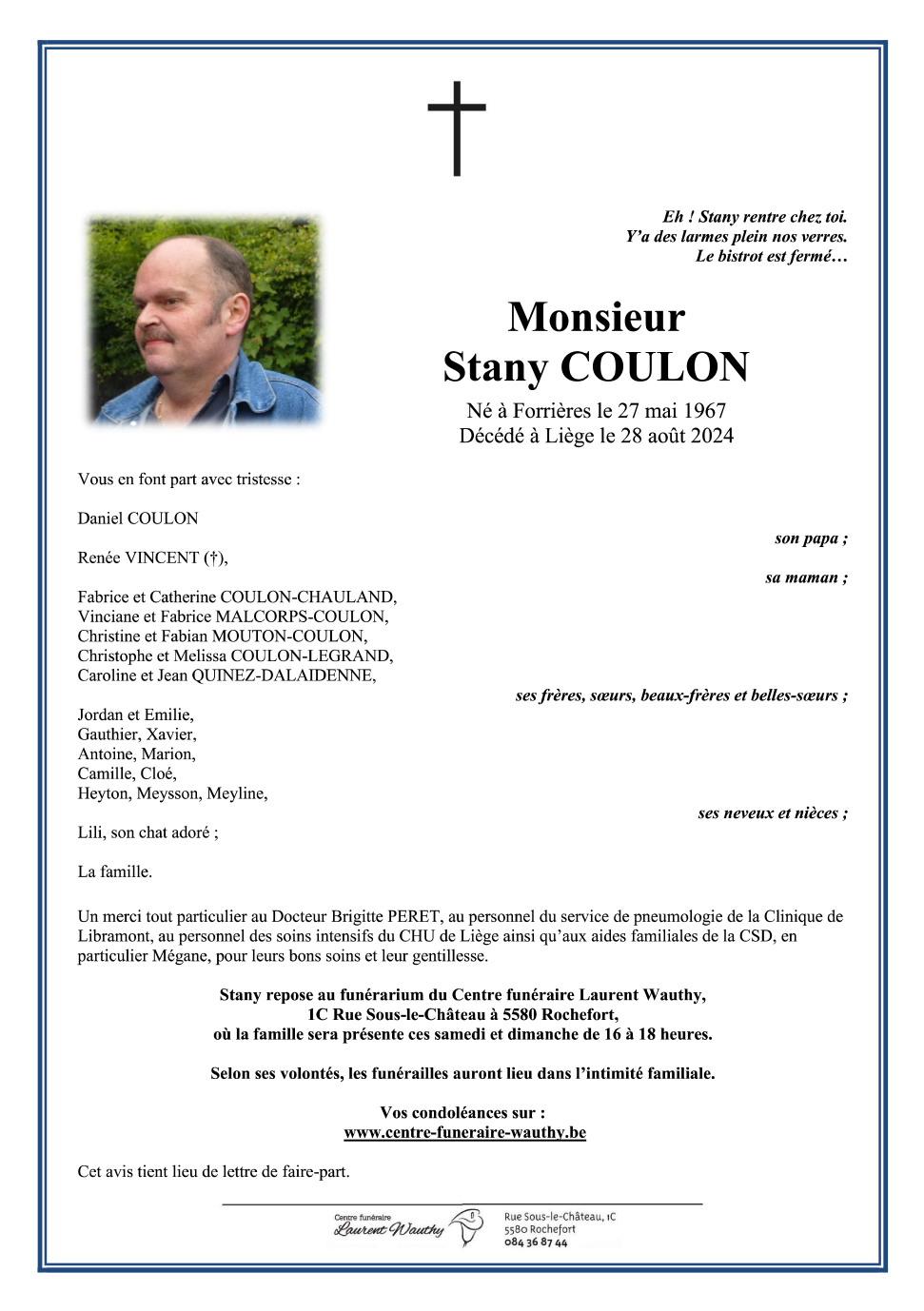 Died in Liège (4000) on 28 August 2024 at the age of 57 years