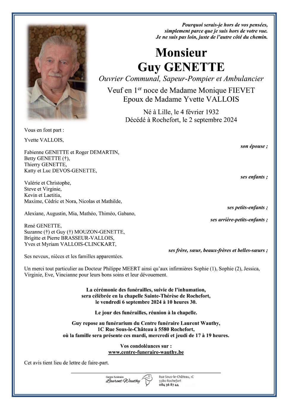 Décédé à Rochefort (5580) le lundi 2 septembre 2024 à l'âge de 92 ans