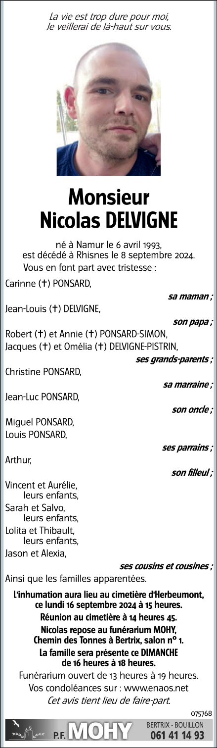 Décédé à Rhisnes (5080) le dimanche 8 septembre 2024 à l'âge de 31 ans