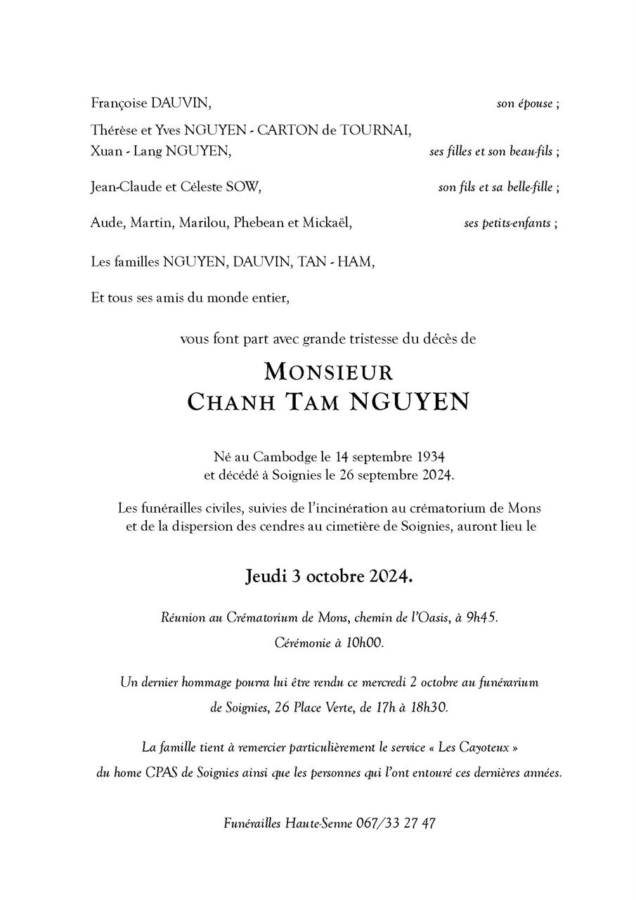 Décédé à Soignies (7060) le jeudi 26 septembre 2024 à l'âge de 90 ans