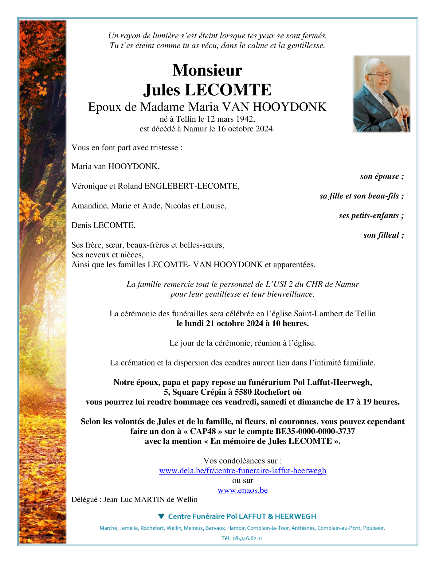 Né à Tellin (6927) le jeudi 12 mars 1942