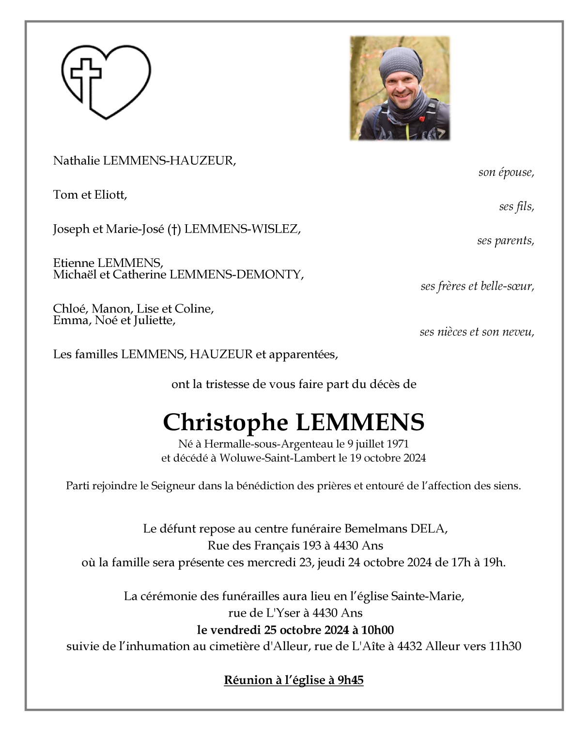 Décédé à Bruxelles (Woluwe-Saint-Lambert) (1200) le samedi 19 octobre 2024 à l'âge de 53 ans