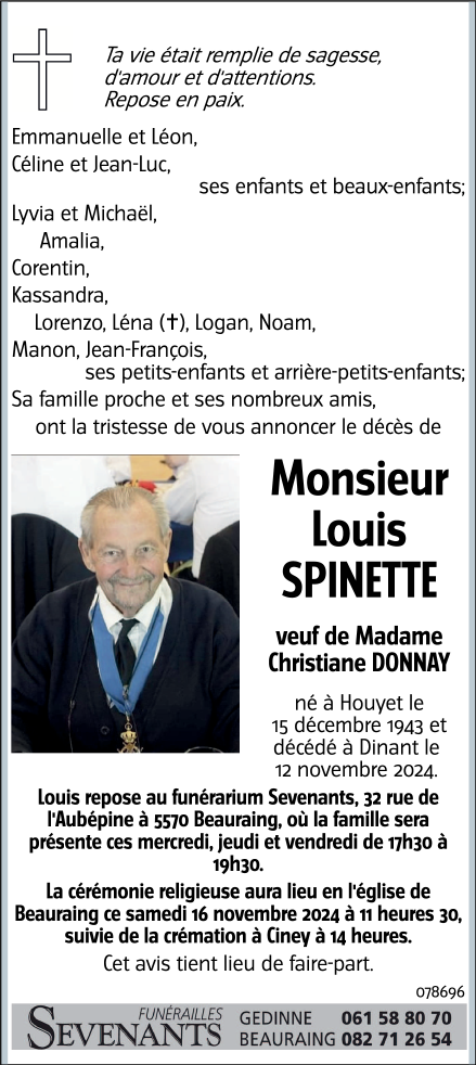 Décédé à Dinant (5500) le mardi 12 novembre 2024 à l'âge de 80 ans