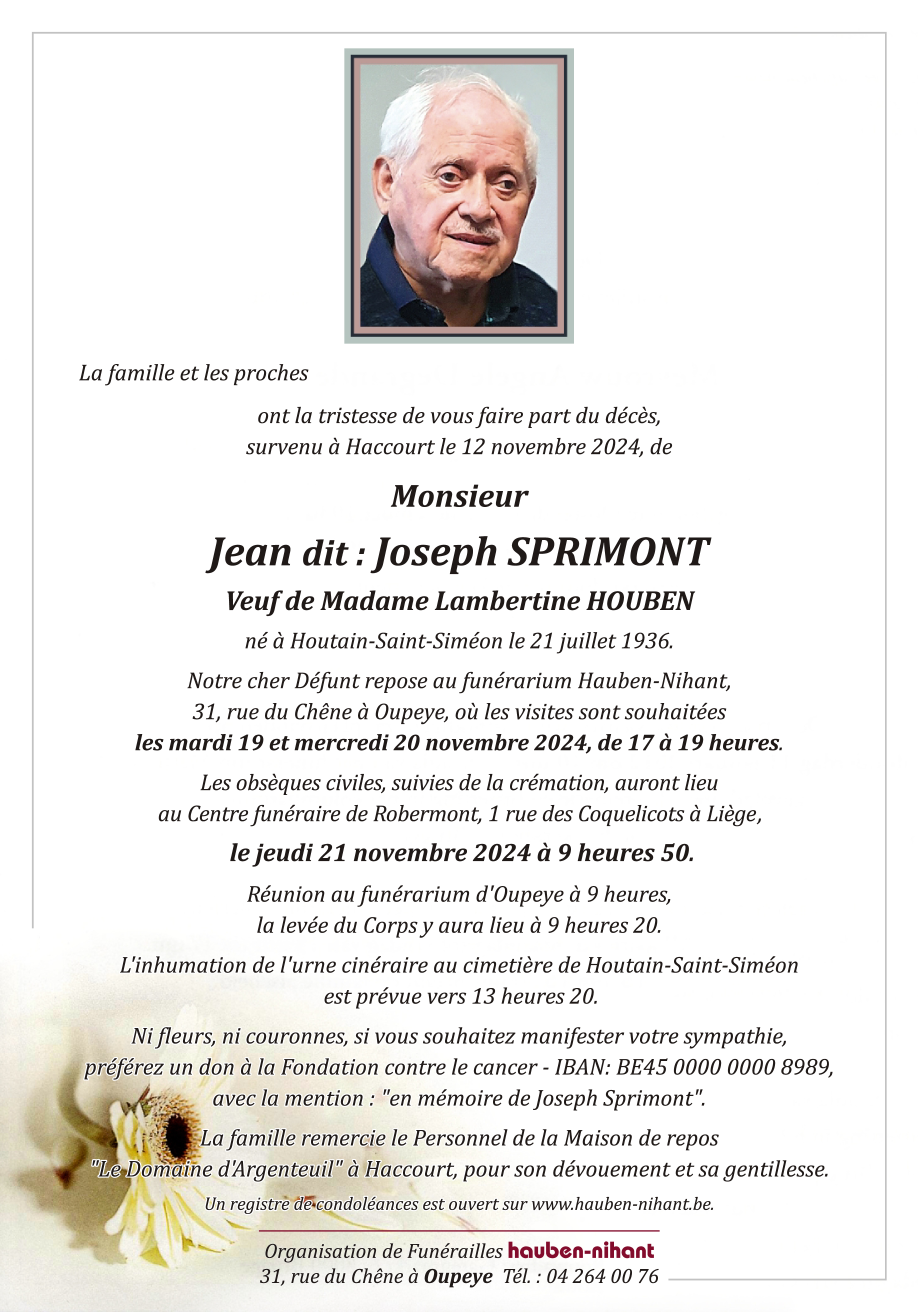 Décédé à Haccourt (4684) le mardi 12 novembre 2024 à l'âge de 88 ans