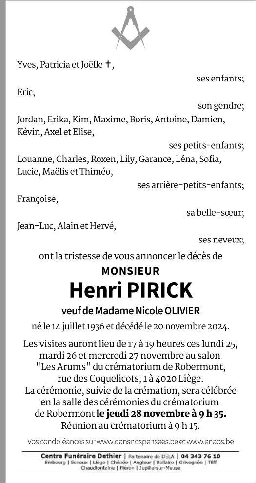 Died in Liège (4000) on 20 November 2024 at the age of 88 years