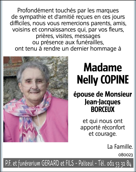 Epouse de Monsieur Jean-Jacques BORCEUX