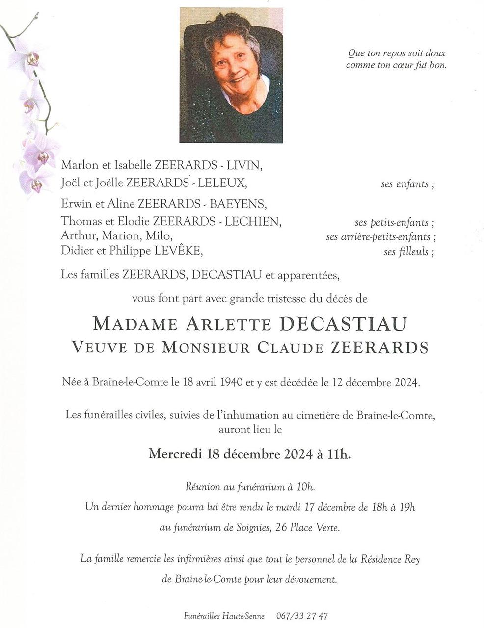 Décédée à Braine-le-Comte (7090) le jeudi 12 décembre 2024 à l'âge de 84 ans