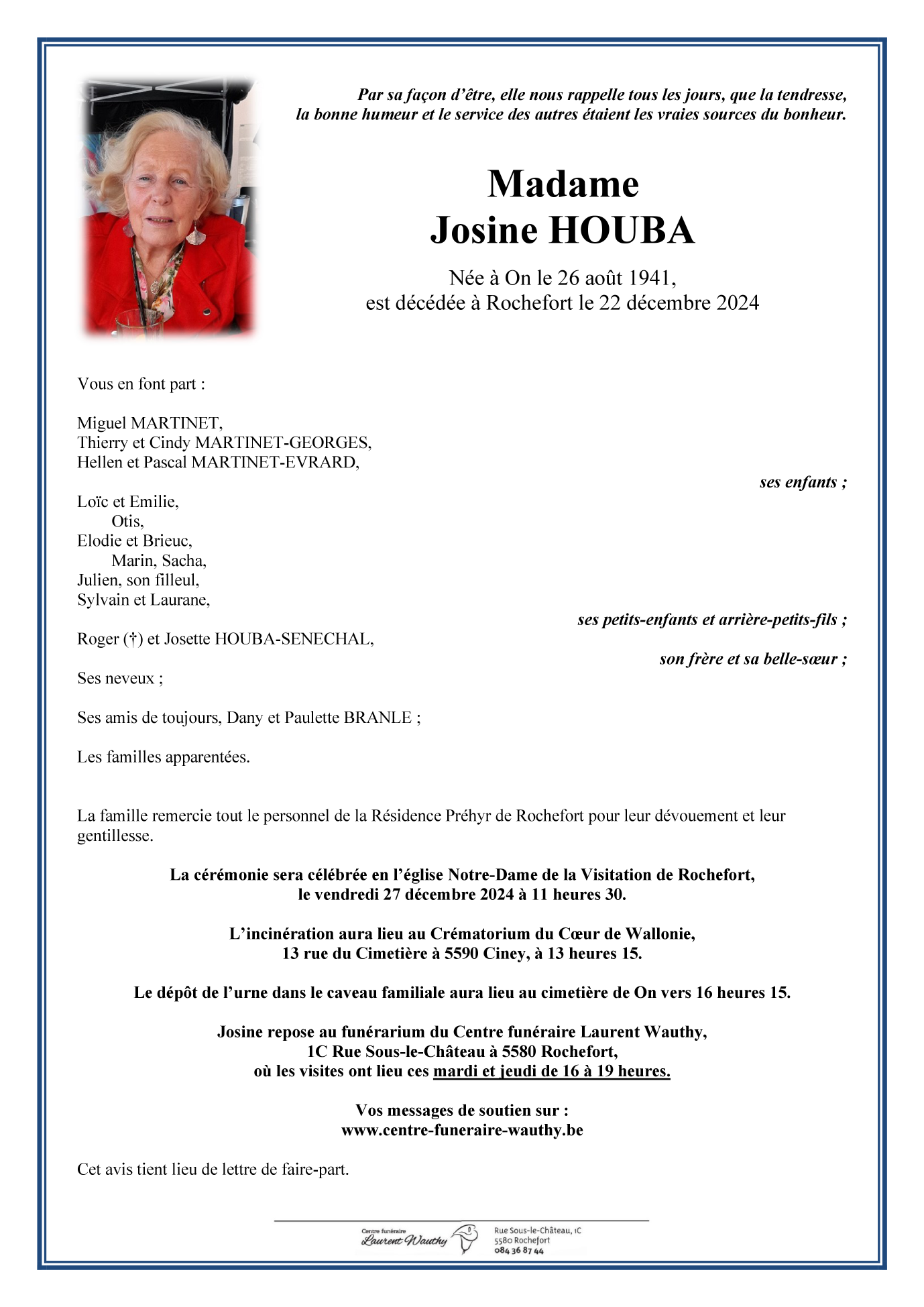 Died in Rochefort (5580) on 22 December 2024 at the age of 83 years