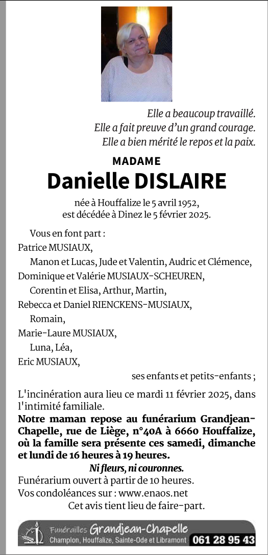 Madame Danielle DISLAIRE