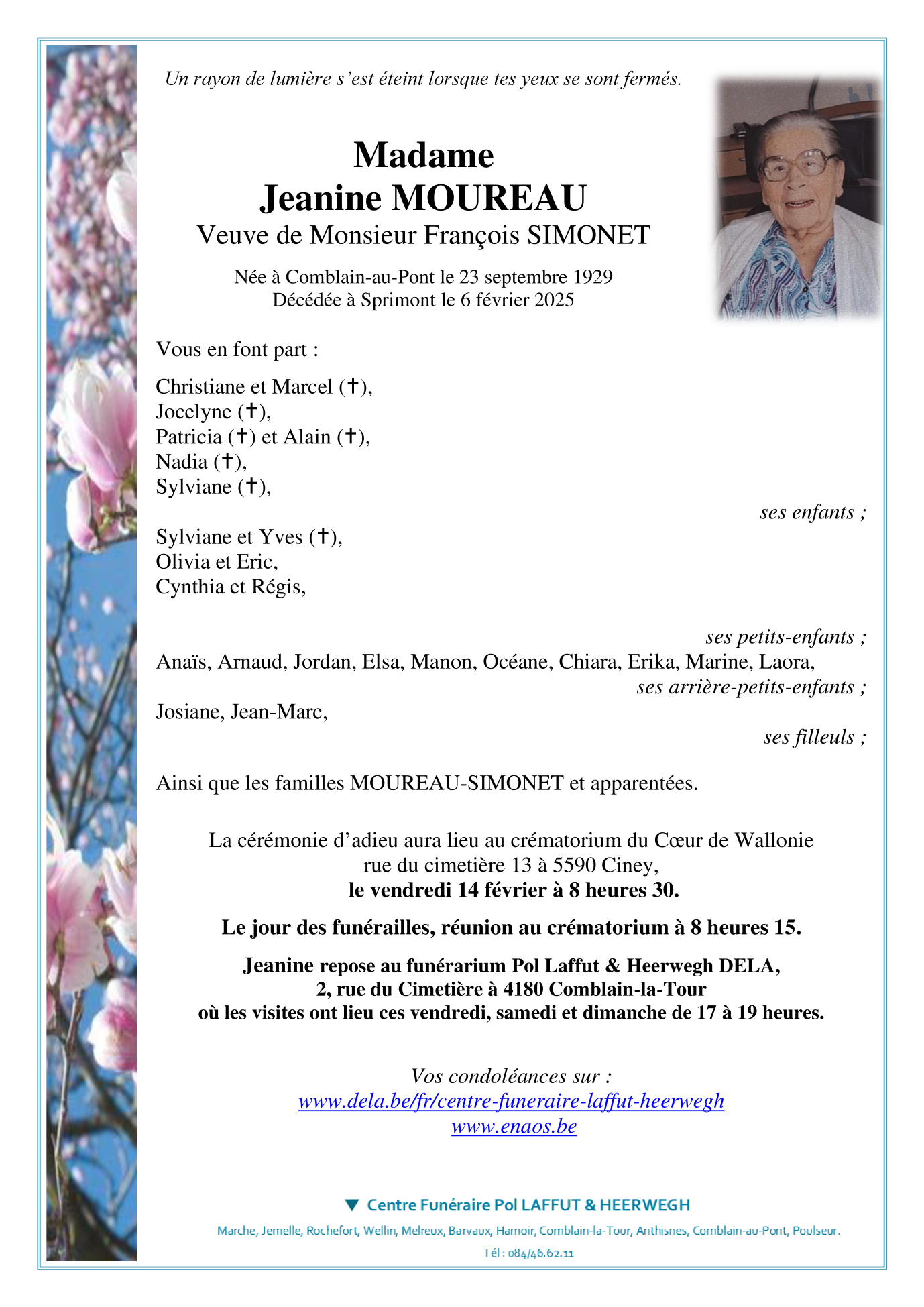 Died in Sprimont (4140) on 06 February 2025 at the age of 95 years