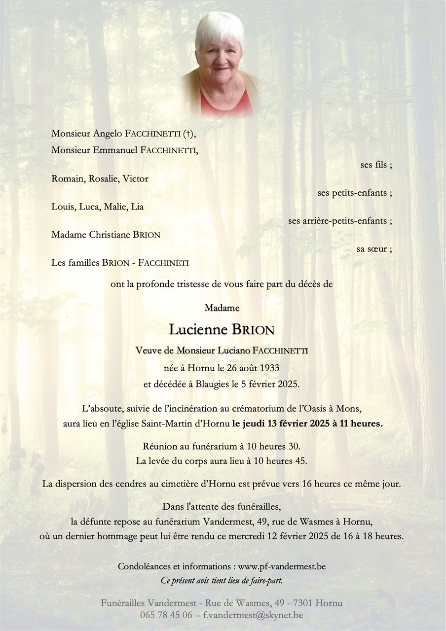 Décédée à Blaugies (7370) le mercredi 5 février 2025 à l'âge de 91 ans