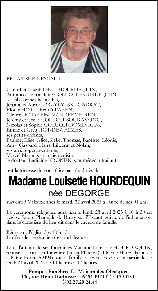 Died in Valenciennes (59300, France) on 22 April 2025 at the age of 90 years