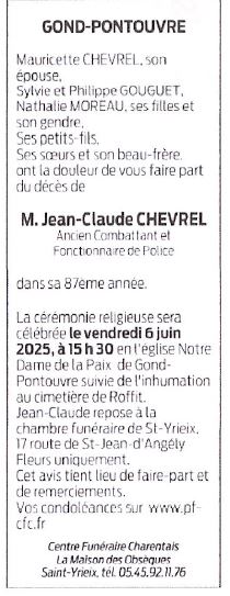 Died in Saint-Michel (16470, France) on 03 June 2025 at the age of 86 years