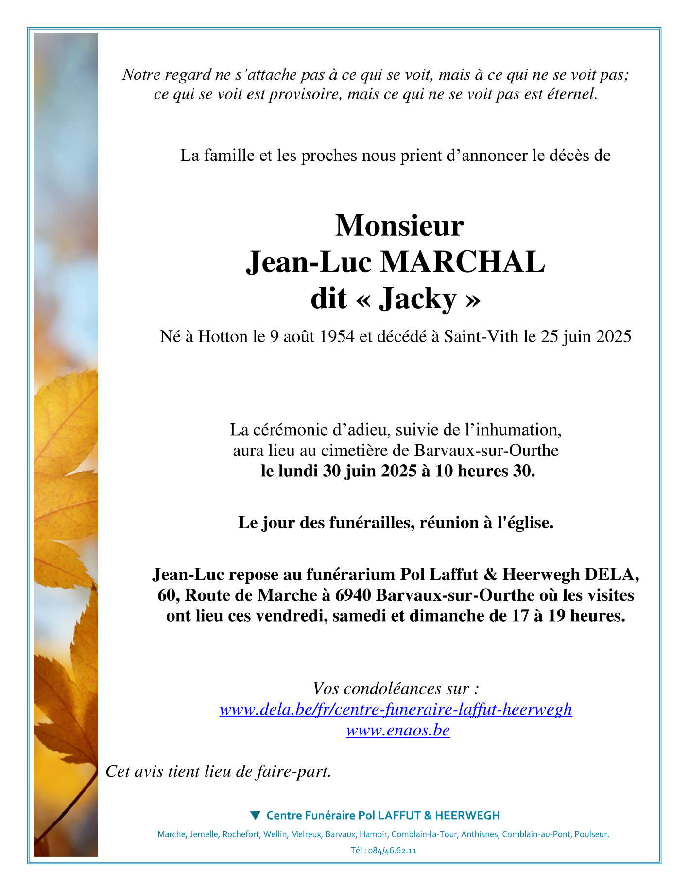 Décédé à Saint-Vith (4780) le mercredi 25 juin 2025 à l'âge de 70 ans