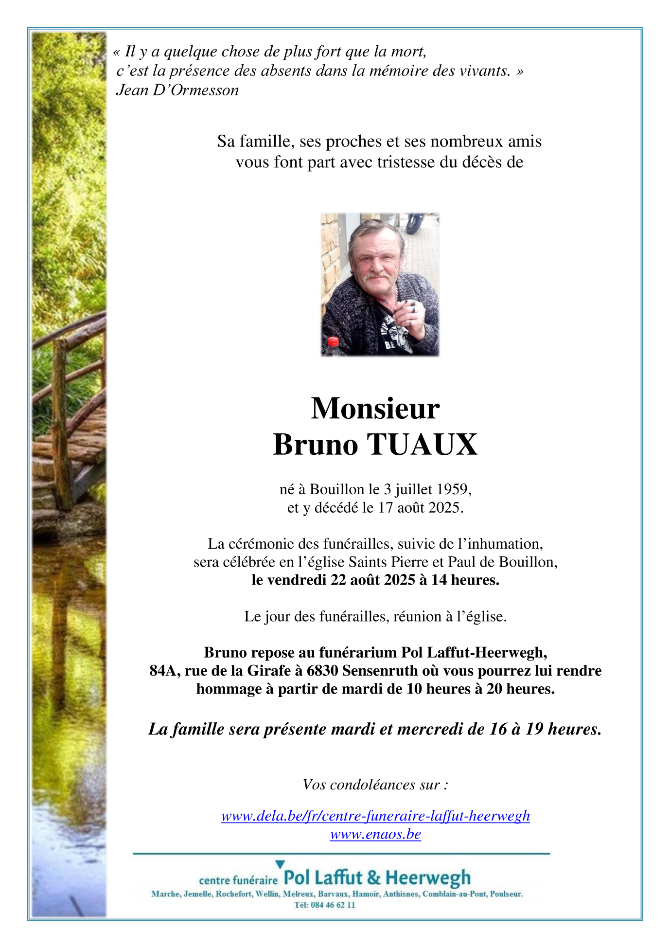 Décédé à Bouillon (6830) le dimanche 17 août 2025 à l'âge de 66 ans