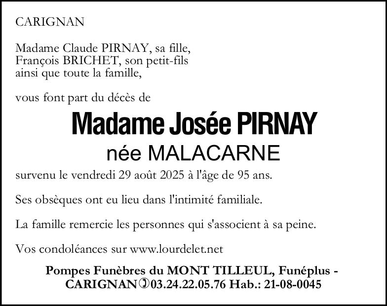 Madame Joséphine PIRNAY née MALACARNE