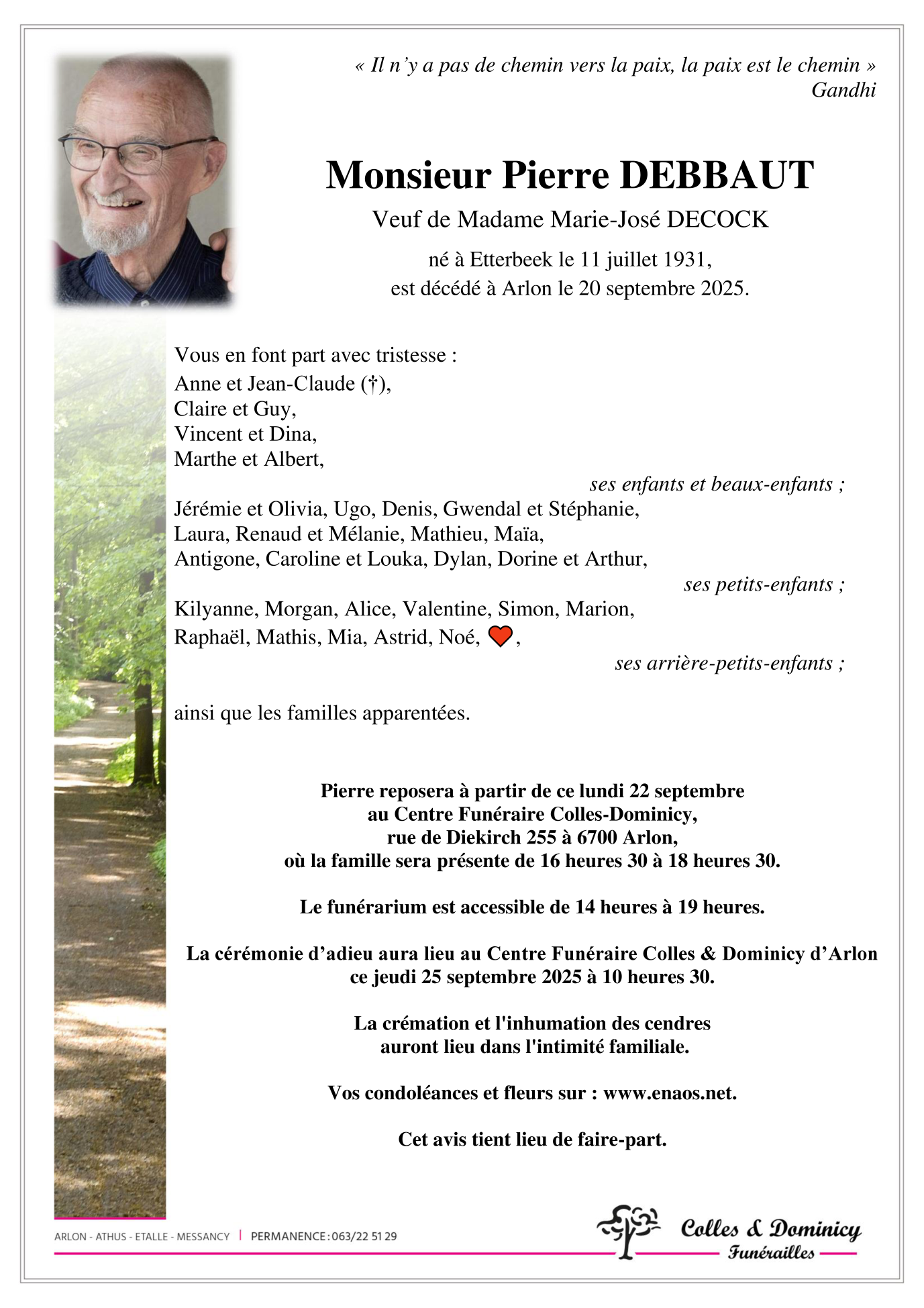 Décédé à Arlon (6700) le samedi 20 septembre 2025 à l'âge de 94 ans