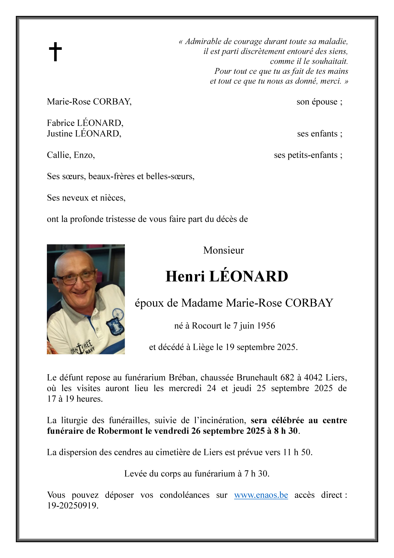Monsieur Henri LÉONARD époux de Marie-Rose CORBAY