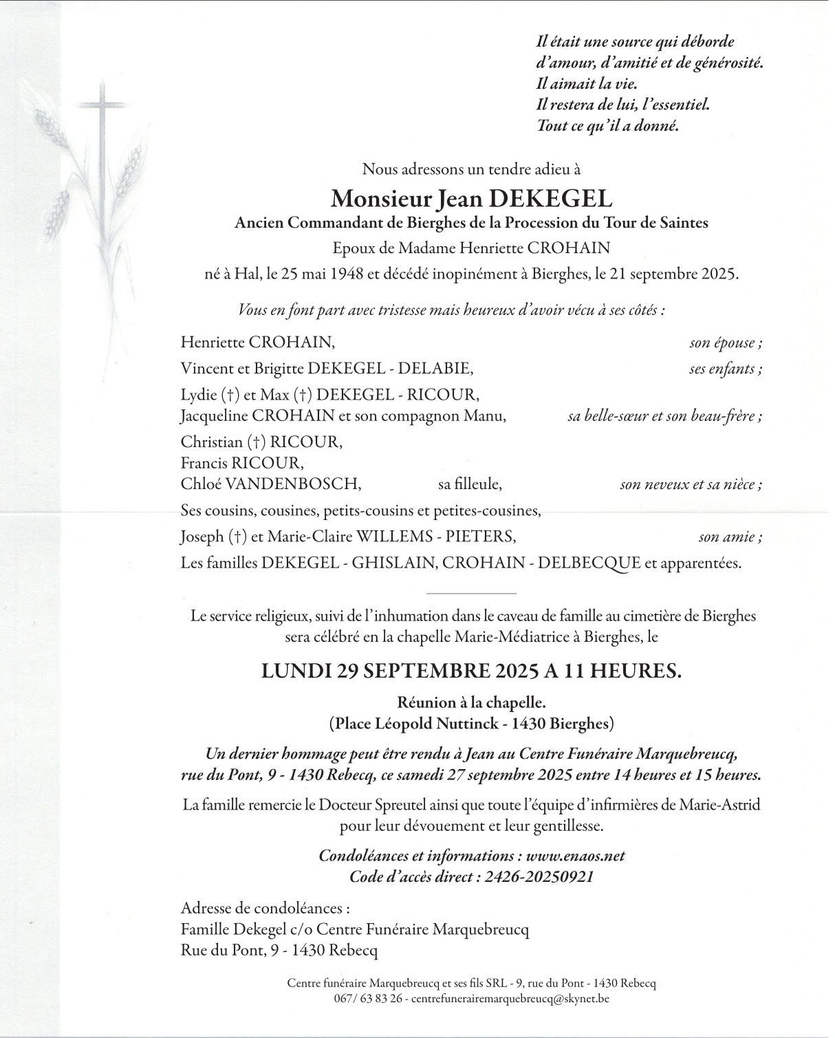 Décédé à Bierghes (1430) le dimanche 21 septembre 2025 à l'âge de 77 ans