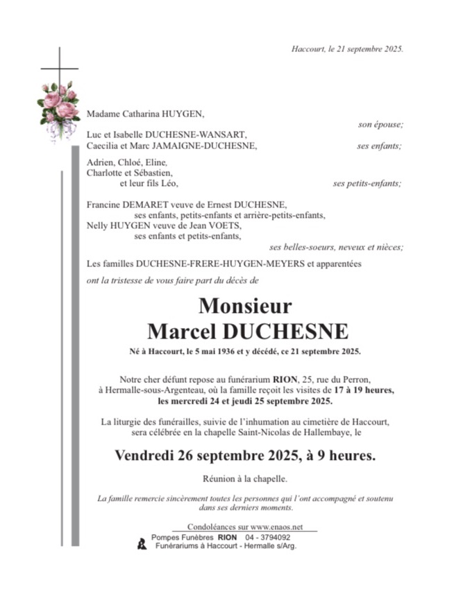 Décédé à Haccourt (4684) le dimanche 21 septembre 2025 à l'âge de 89 ans