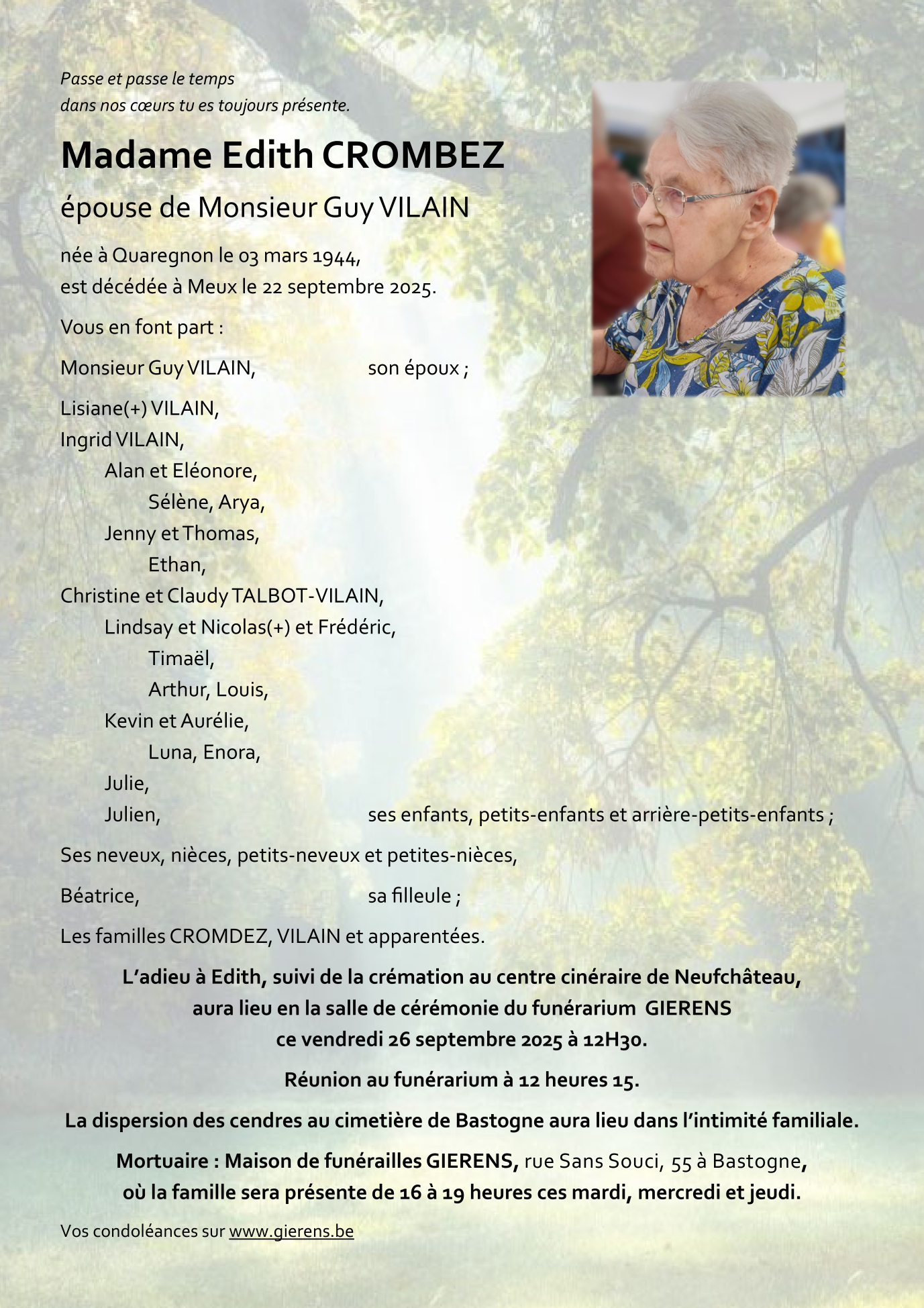 Overleden te Meux (5081) op maandag 22 september 2025 op 81-jarige leeftijd