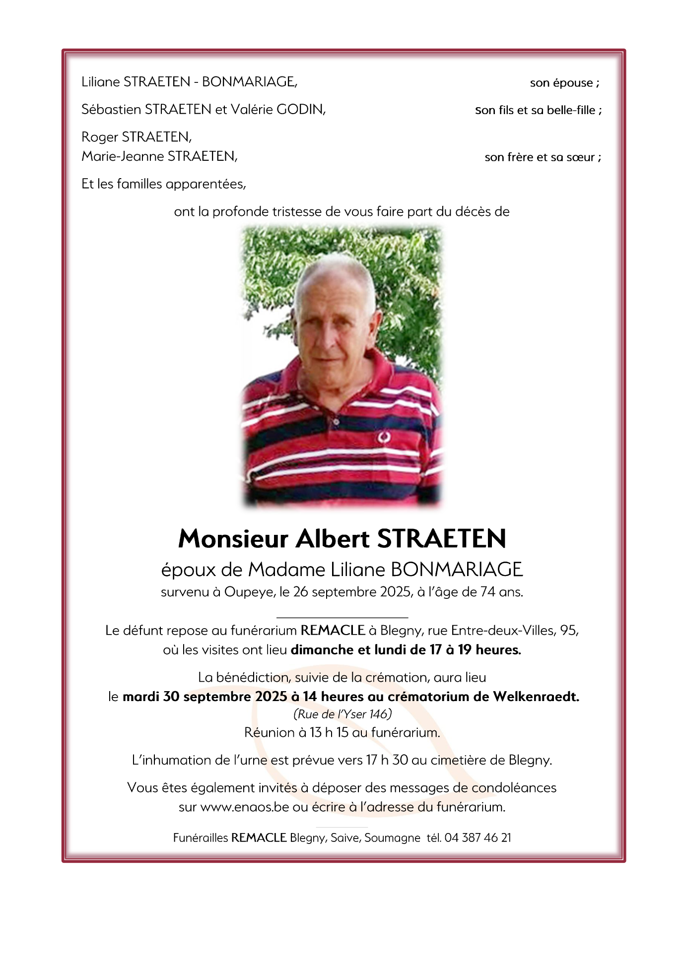 Décédé à Oupeye (4680) le vendredi 26 septembre 2025 à l'âge de 74 ans
