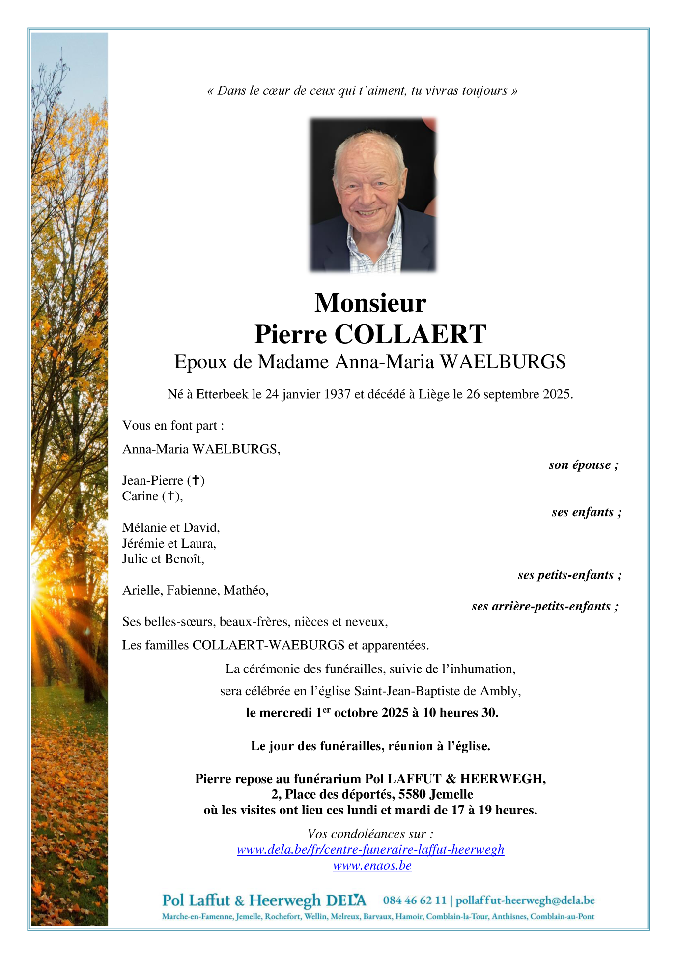 Décédé à Liège (4000) le vendredi 26 septembre 2025 à l'âge de 88 ans