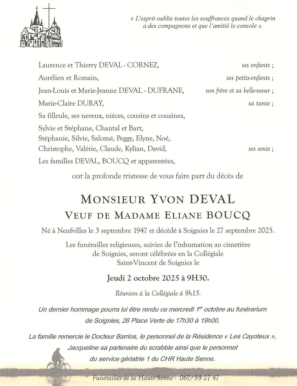 Died in Soignies (7060) on 27 September 2025 at the age of 78 years