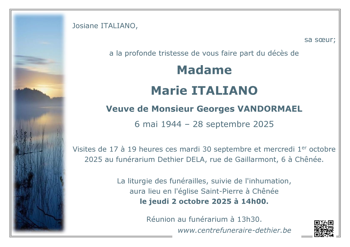 Décédée à Liège (4000) le dimanche 28 septembre 2025 à l'âge de 81 ans